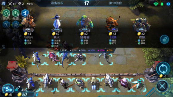 12.花費5金幣為指揮官增加經(jīng)驗,指揮官等級提升可以增加上場的棋子數(shù)。最多可升10級,在戰(zhàn)場上放置10枚棋子。