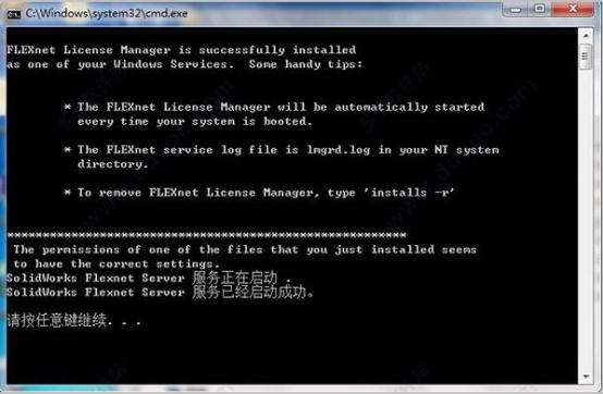 以管理員身份運行“SolidWorks_Flexnet_Server\server_install.bat”并等到新服務(wù),將安裝并啟動“SolidWorksFlexnetServer”。
