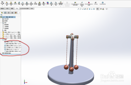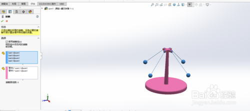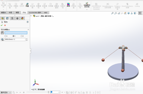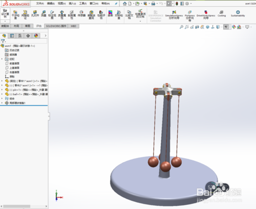 solidworks2019破解版怎么制作離心動畫?打開solidworks2019,導(dǎo)入實體模型。底座,支架,連接桿,小球。