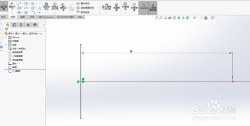 右視基準(zhǔn)面,草繪一條直線,邊長20。作為輪廓草圖