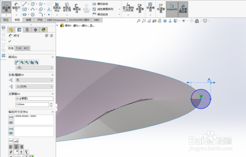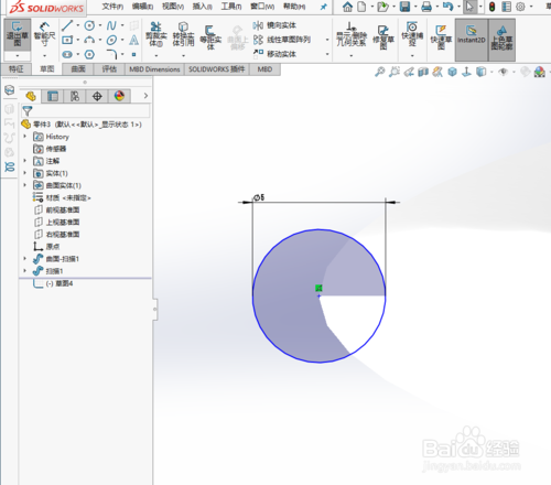 新建草圖,在邊線先上繪制直徑為5的圓