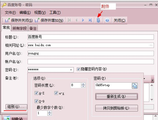 進(jìn)入密碼管理器后,單擊新密碼 即可添加。單擊密碼文本框后的按鈕就可以進(jìn)入密碼生成器,它能按您的需要生成隨機(jī)密碼,隨機(jī)密碼更不容易被破解。