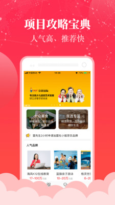 —豐富的項(xiàng)目行業(yè):餐飲、教育、服裝、家居、珠寶、美容、建材、等30大傳統(tǒng)熱門加盟行業(yè),云集火鍋、快餐、一對(duì)一輔導(dǎo)、幼兒早教、機(jī)器人教育、雞排、英語(yǔ)培訓(xùn)、奶茶等時(shí)下熱門開店項(xiàng)目,滿足您個(gè)性化的投資需求。—開店新行情:快速更新的開店行情,網(wǎng)紅店、大牌店,一覽無(wú)余,一手掌握!