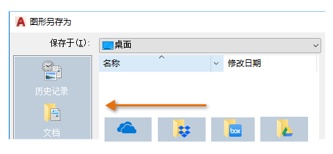 根據(jù)已安裝的程序,AutoCAD 文件選擇對話框中的“放置”列表可以包括 Box、Dropbox 和多個類似服務。