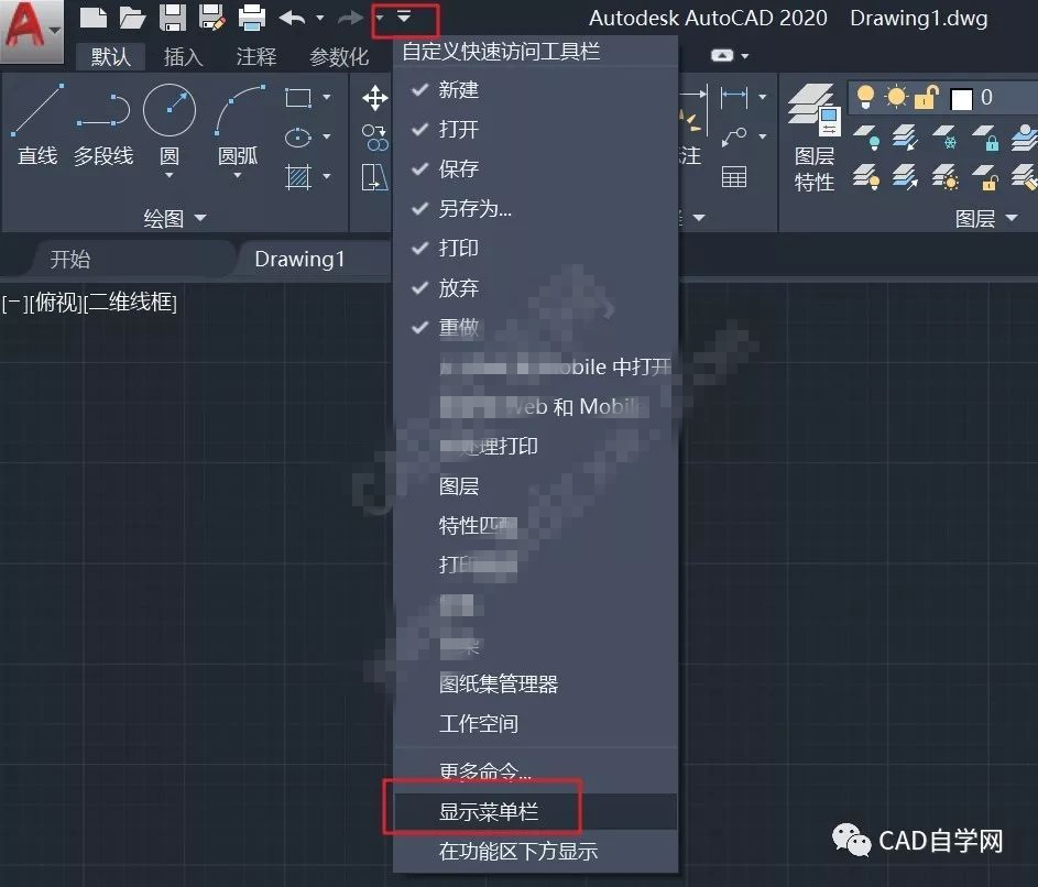 如何找回AutoCAD2020經(jīng)典界面?1、顯示菜單欄;