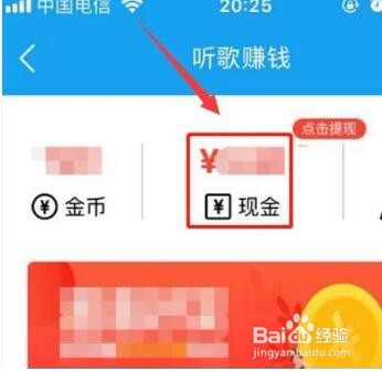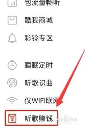 3、進(jìn)入之后,點(diǎn)擊“聽歌賺錢”,進(jìn)入下一頁面,如圖所示。