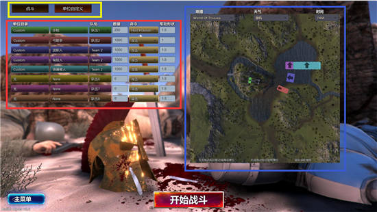 黃色框:兩個戰(zhàn)斗準備界面切換,點擊自定義單位會進入下面的界面。