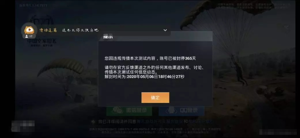 事實上,今天的體驗服測試并不是這款游戲第一次測試,4月25日騰訊曾對一款名為《孤島行動》的手游進行了小規(guī)模測試,從今天畫面、玩法對比來看《孤島行動》其實就是《和平精英》的測試代號,不過上個月測試騰訊采取了嚴格的保密措施,還出現(xiàn)了一個搞笑的“20萬警告”梗,不過目前來看,《和平精英》測試依然要求玩家一定程度保密,比如今天GameLook看直播才半個小時,主播就被封號一年了……不過好在筆者動作快,不僅截了圖、還錄了視頻反復(fù)揣摩。