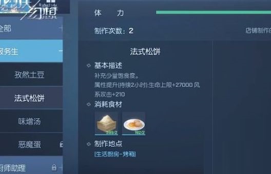 制作界面需要一定的世界,每次是消耗一定的體力,每天都有500點的體力,可以用來釣魚或者是采集,這樣就可以制作出各種菜肴了。