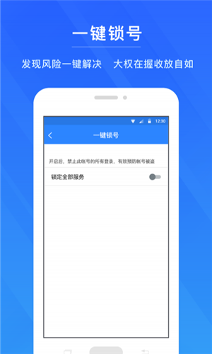4、一鍵鎖號:發(fā)現(xiàn)風險可立刻鎖定帳號,減少資料和金錢損失