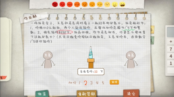 這游戲真的有點難。。。也許這會是讓你能經(jīng)歷絕望的一款游戲,因為你沒辦法正確的解出游戲中的題目,就會感受到來自父母無盡的嘲諷,而這個過程中可能會產(chǎn)生焦慮、暴躁等癥狀,甚至會開始懷疑智商。。。但真相并非是惡意去折騰玩家們,制作團隊希望能通過游戲這種方式,與現(xiàn)實產(chǎn)生情感共鳴,讓玩家能體會中國家長在輔導孩子作業(yè)時產(chǎn)生的崩潰感覺,同時更能理解作為孩子做不出題時的無助心情,總之不要因為解不出小學生數(shù)學題而產(chǎn)生打我們的想法就好。
