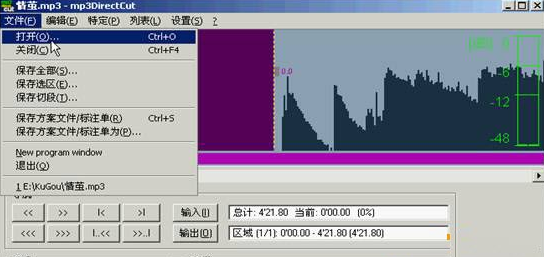 1、依次執(zhí)行“文件→打開”選擇你需要進行剪切的MP3文件(注意:必須是MP3格式的,其它格式的文件打不開)