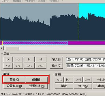 若我們在操作的過程中發(fā)現所選取的部分不是很精確,不必再重新打開文件,只需要按編輯功能中的“編輯”按鈕或者用鼠標左鍵點一下音頻圖標就可以還原到未選取的狀態(tài)了。