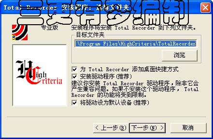 15、在圖14中點(diǎn)“下一步”之后,就到了下的界面, 使用剛剛安裝過的錄音機(jī)主程序的默認(rèn)安裝路徑就OK了。