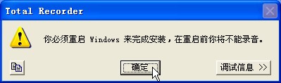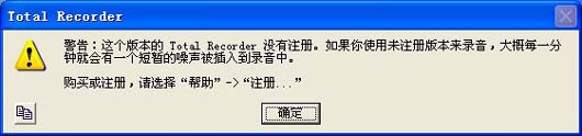 6、回到桌面點(diǎn)擊“Total Recorder”錄音機(jī)圖標(biāo),提示如下,點(diǎn)“確定”就OK了。