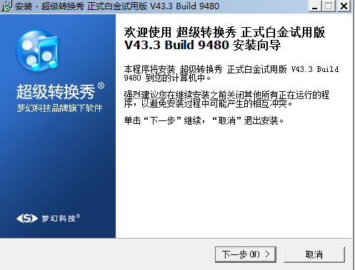 1.首先自該頁(yè)找到下載地址并下載超級(jí)轉(zhuǎn)換秀軟件包,下載后請(qǐng)先將.zip格式文件進(jìn)行解壓找到.exe格式文件雙擊運(yùn)行。運(yùn)行后出現(xiàn)如下界面截圖:在該界面小伙伴只需要直接單擊【下一步】按鈕繼續(xù)安裝即可;