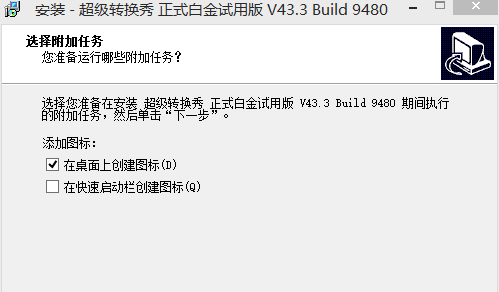 5.接下來(lái)跳轉(zhuǎn)的是超級(jí)轉(zhuǎn)換秀附加功能選擇安裝界面截圖:在該處小伙伴們可根據(jù)自己需求勾選你需要的選項(xiàng)。如:是否創(chuàng)建桌面圖標(biāo)和是否在快速啟動(dòng)欄創(chuàng)建圖標(biāo);
