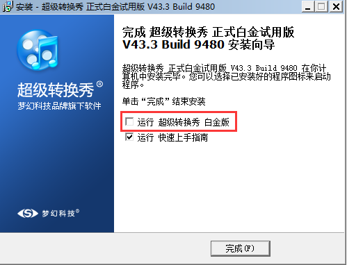 1).勾選 “運(yùn)行超級(jí)轉(zhuǎn)換秀白金版” 表示單擊【完成】后將直接打開(kāi)該軟件;