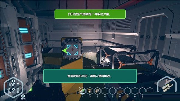 出艙之后,會在隕坑附近找到補給箱,根據提示趕緊拿出里面的各種消耗品補給。