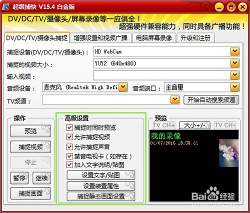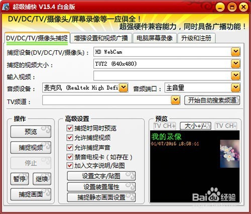 4、使用“DV/DC/TV/攝像頭捕捉”功能,錄制硬件視頻