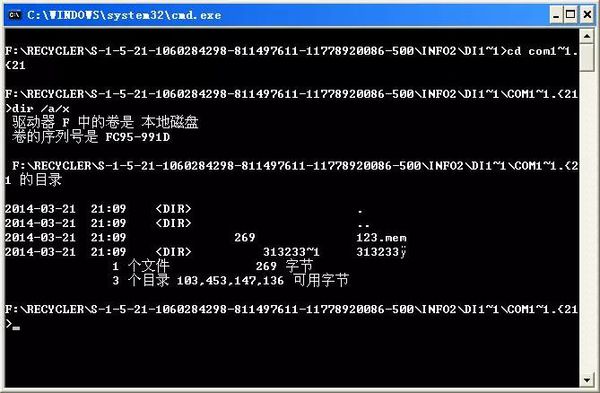 cd /d F:\RECYCLER\S-1-5-21-1060284298-811497611-11778920086-500\INFO2