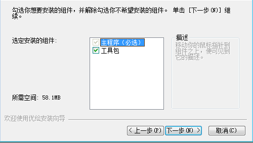 4、選擇軟件安裝的組件,不需要的將勾去掉,點擊下一步;