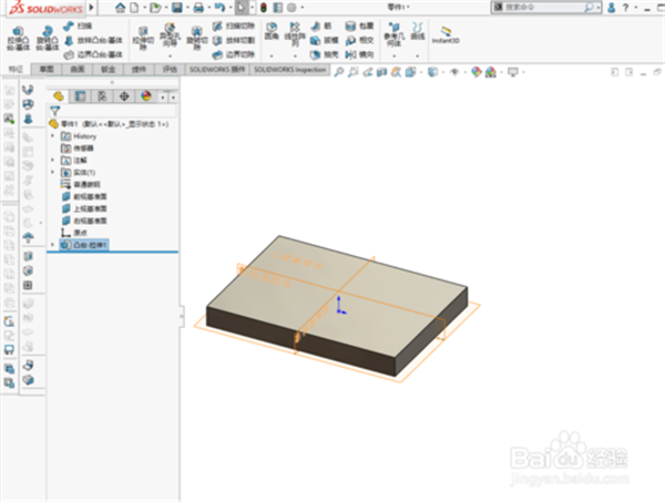 2、創(chuàng)建一個(gè)長(zhǎng)方體板材。尺寸自己設(shè)置。