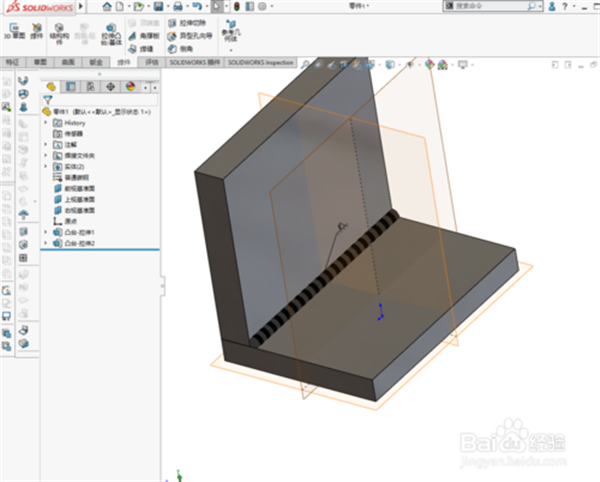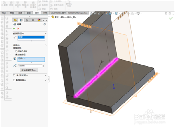 6、選擇兩個(gè)平面,及焊接面。如果是選擇的焊接路徑,則選著兩個(gè)面的交線。