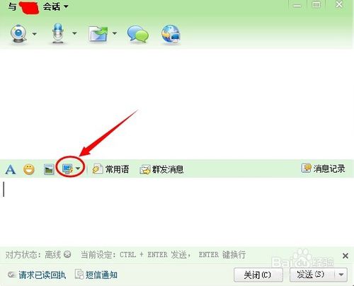 登陸之后就會(huì)顯示聯(lián)系人,找一個(gè)聯(lián)系人,雙擊打開兩天窗口,然后可以看到屏幕截圖的按鈕,如下圖所示。