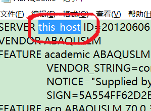 打開(kāi)ABAQUS中,在crack中打開(kāi)ABAQUS.lic(選擇記事本打開(kāi));打開(kāi)后將我圈的地方改為自己的計(jì)算機(jī)名,保存。這里ID是不能修改的