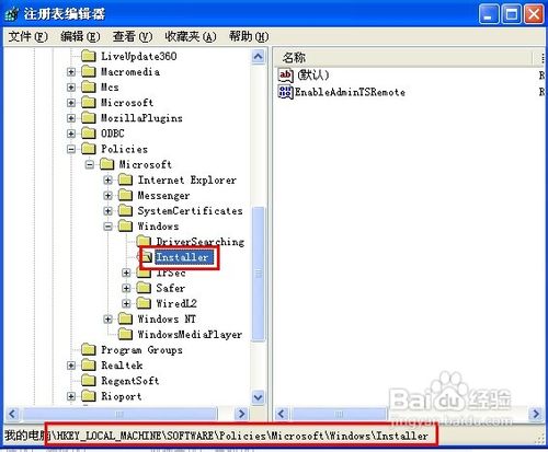 4、依次找到HKEY_LOCAL_MACHINE——Software——Policies——Microsoft——Windows——Installer
