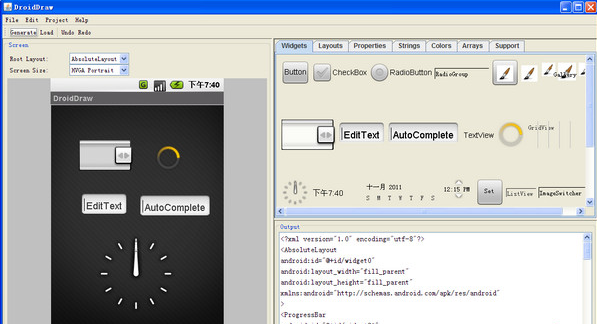 5.可以通過它拖動控件、設(shè)置層屬性、設(shè)置顏色等步驟輕松地生成復(fù)雜的安卓XML布局文件。