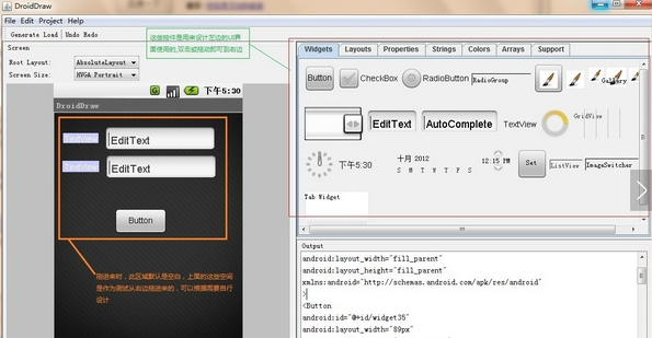 DroidDraw是一款A(yù)ndroid界面設(shè)計(jì)器,基于Java Swing開發(fā),我們可以通過它來生成復(fù)雜的Android Layout XML文件,Android的Layout和Swing Layout中有很好的對應(yīng),設(shè)計(jì)器的代碼編寫起來還是比較容易的,需要的朋友們就趕緊來下載試試吧!
