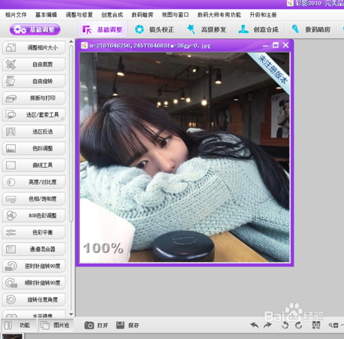 一、彩影如何打?。?br />首先我們點(diǎn)擊左下角的打開(kāi)按鈕,用我們這個(gè)軟件打開(kāi)你想要打印的圖片。其實(shí)我們完全可以直接使用這個(gè)軟件的打印命令打印照片,但將這軟件只當(dāng)圖片打印軟件用,顯然浪費(fèi)了它“中國(guó)第一圖像處理軟件”的美譽(yù)。