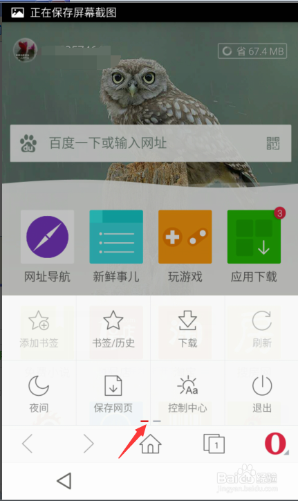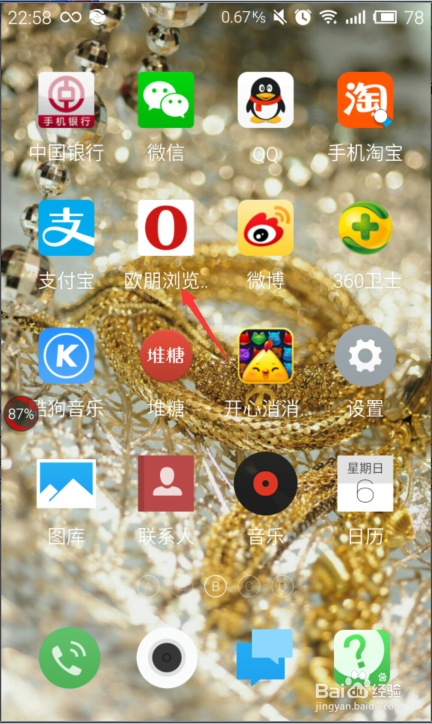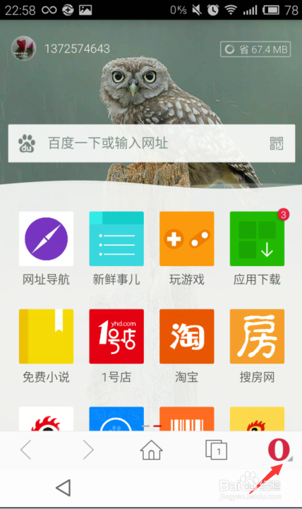 2、進入瀏覽器后,點擊箭頭方向所指的紅色“o"