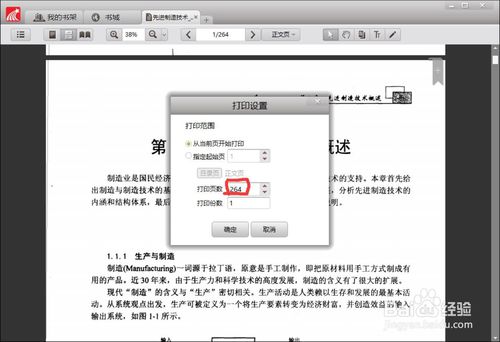 3、把“打印頁數(shù)”設(shè)置為你想打印的頁數(shù)(圖片中的意思是從當(dāng)前頁向后打印264頁,如果想打印整本,則設(shè)置為整本書的頁數(shù)即可)。然后點(diǎn)擊“確定”。