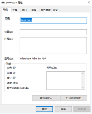 點(diǎn)擊管理,選擇打印機(jī)屬性,再點(diǎn)擊更改屬性,即可更改打印機(jī)的名稱,名稱請(qǐng)不要帶有任何PDF字樣。此處以“bokeyuan”為更改后的打印機(jī)名。而后就可以使用更改過名字的虛擬PDF打印機(jī)打印超星的pdg文件了。