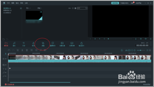 2、此時視頻會進(jìn)去了時間軌道上,點(diǎn)擊濾鏡功能。