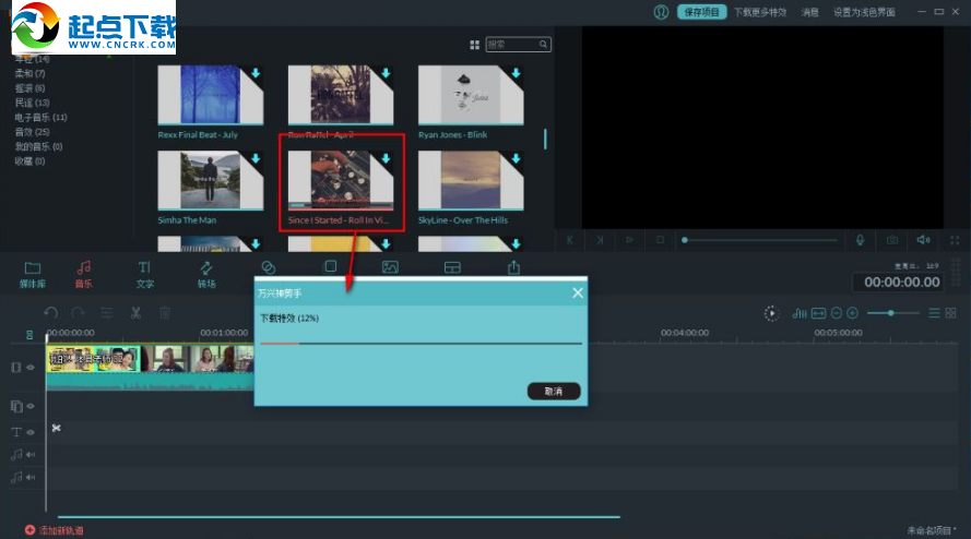 6、下載完成后,我們可以將音樂拖動至音軌時間軸上。