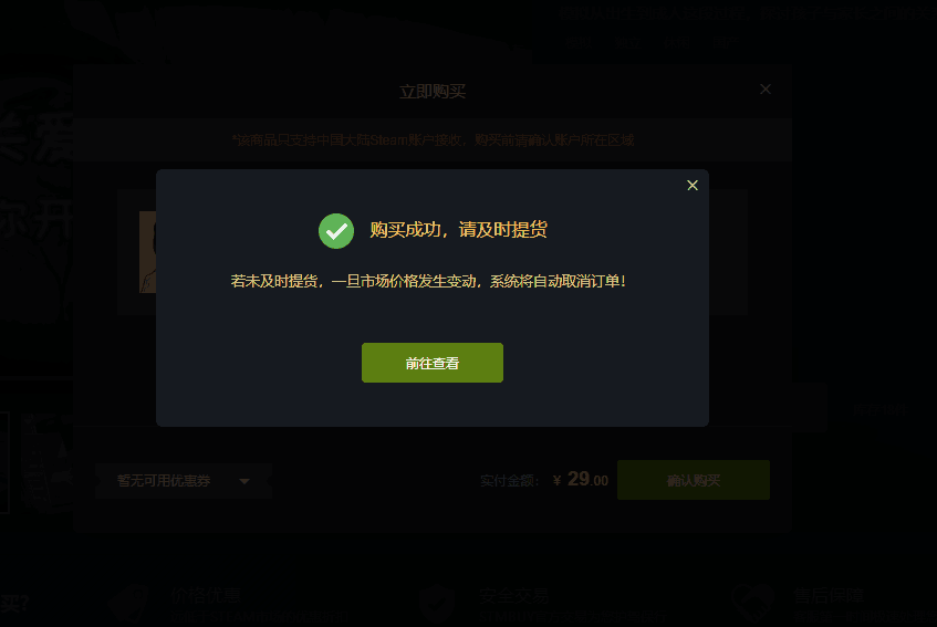 1. 付款成功后如沒有綁定steam,則需要綁定steam賬號