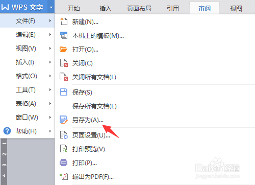 進(jìn)行點(diǎn)擊了文字的選項(xiàng)之后,彈出了下一級菜單選中為 另存為 的選項(xiàng)。