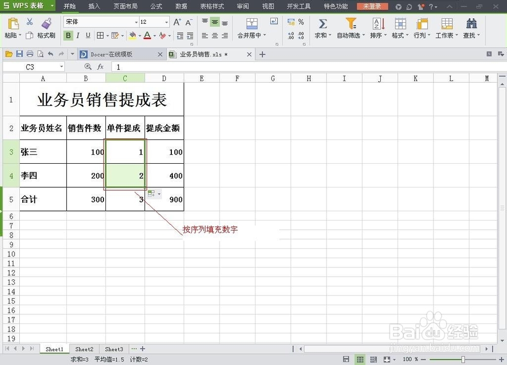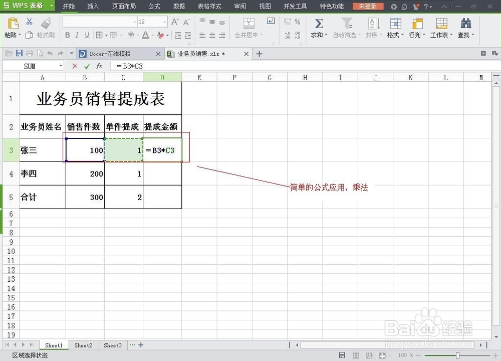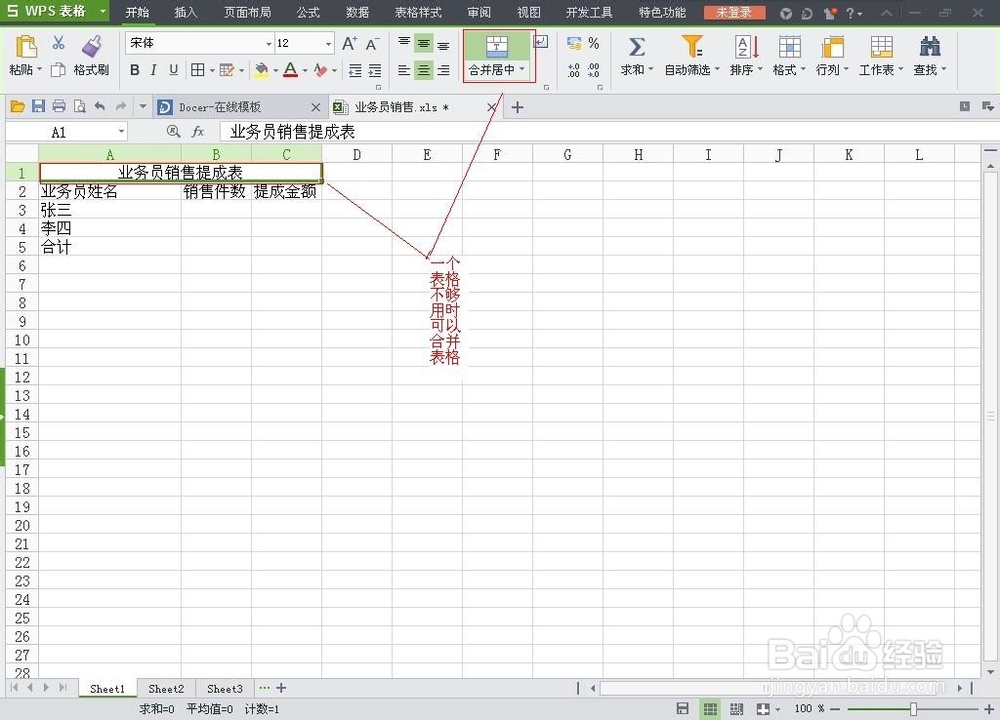 打開表格,在第一行輸入自己表格的名頭(例如業(yè)務(wù)銷售提成表)