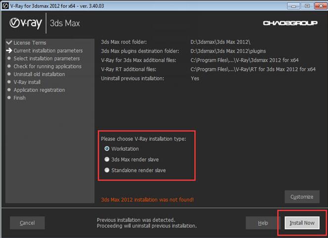 2、接著選擇要安裝的類型:workstation(鏡像安裝)、3ds max render slave(3DS MAX渲染從機)、standalone render slave(獨立服務(wù)器渲染)。這里我們選擇默認的workstation就可以了,接著點擊“install now"【開始安裝】;