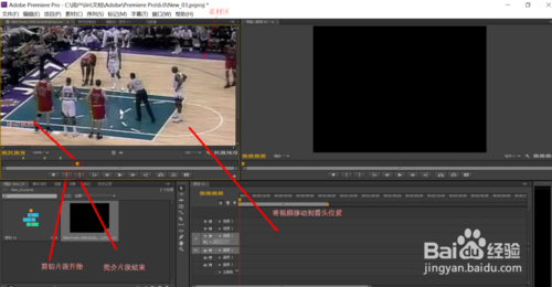 8、移動(dòng)視頻,點(diǎn)擊【剪切片段開始】,最后點(diǎn)擊【剪切片段結(jié)束】,拖動(dòng)視頻,點(diǎn)擊【更改序列設(shè)置】