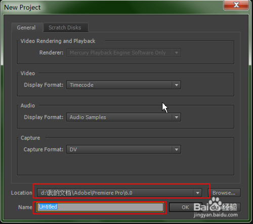 1、打開Adobe Premiere Pro CS6軟件 ,新建一個項目。新建項目提示框內(nèi),可以修改相應的參數(shù)和對文件命名。