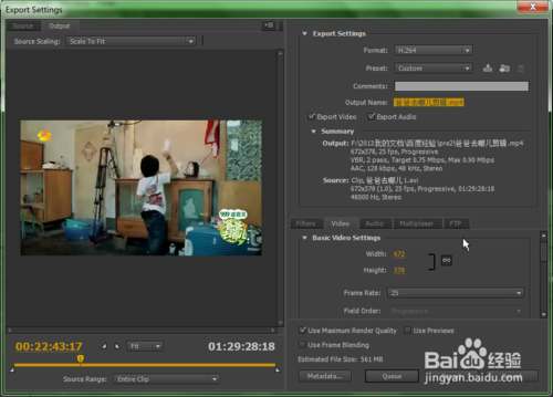 12、然后,在下圖信息框中對比一下源素材與輸出文件的參數(shù)是否相同。如果輸出寬高大小比源寬高大小要大,視頻邊緣就會出現(xiàn)黑框,我們可以在右邊預覽框中看到黑框效果。雖然我們可以通過調(diào)整大小來改變,但是有時候出現(xiàn)黑框是無法避免的事,這取決于源素材的規(guī)格,不過稍微有一點黑框也不會影響觀看,自己斟酌。