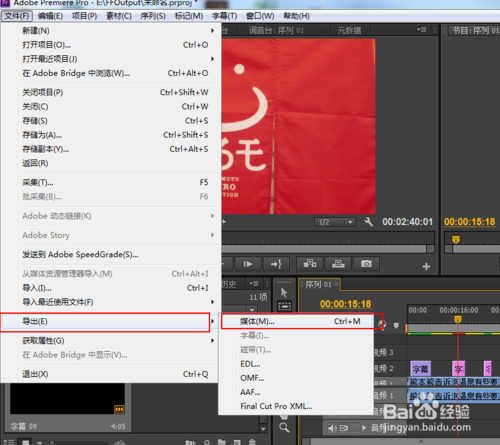 7、最后,當字幕添加完成后,按回車鍵渲染一下,再導出媒體即可。