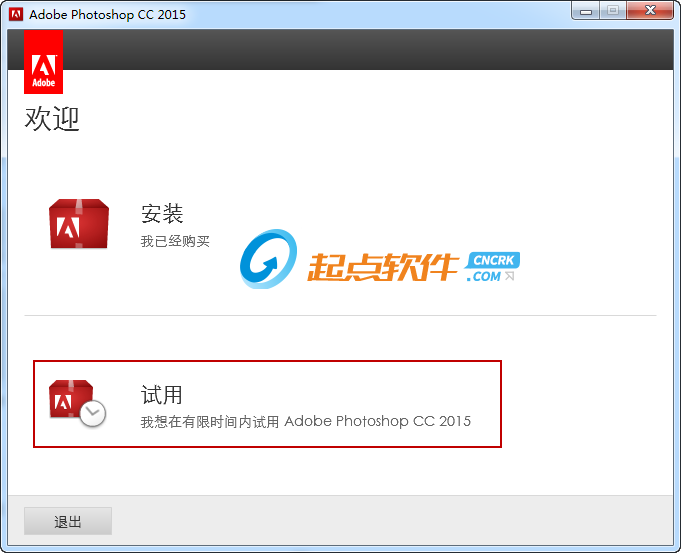 3、安裝完成后先執(zhí)行Photoshop(若無(wú)法執(zhí)行,請(qǐng)安裝Adobe Application Manager),此時(shí)彈出要求登錄ADOBE帳戶,請(qǐng)選擇“稍后登入”和“開(kāi)始試用”;