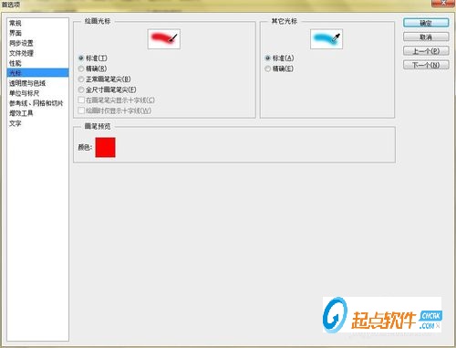 3.切換到光標(biāo)選項(xiàng)卡,在此可以設(shè)置繪畫(huà)光標(biāo)和其它光標(biāo),例如將【繪畫(huà)光標(biāo)】設(shè)置為【標(biāo)準(zhǔn)】,【其它光標(biāo)】設(shè)置為【標(biāo)準(zhǔn)】。