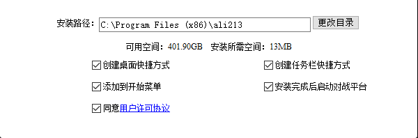 創(chuàng)建桌面快捷方式/創(chuàng)建任務(wù)欄快捷方式/添加到開(kāi)始菜單這三項(xiàng)都是為了方便下次打開(kāi)游俠對(duì)戰(zhàn)平臺(tái)所設(shè)。其他兩項(xiàng)中用戶協(xié)議是必選項(xiàng),不選是不支持繼續(xù)安裝的哦。
